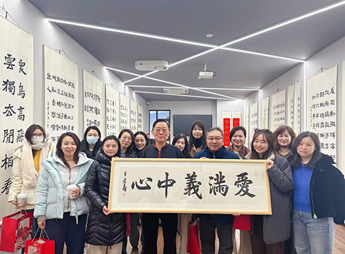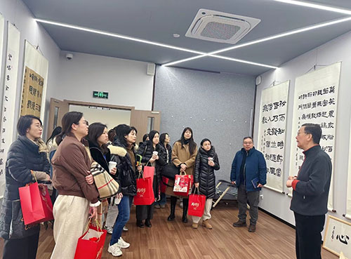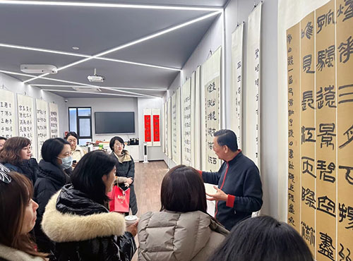 2026年1月24日,国家一级美术师、上海文史研究馆馆员、中国书法家协会理事、上海市书法家协会副主席、上海海派书画艺术馆馆长宣家鑫为上海静安一中心学校家委会代表讲授书法并题字。