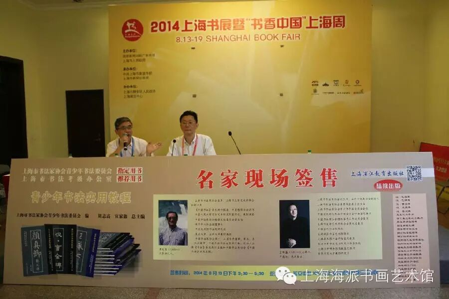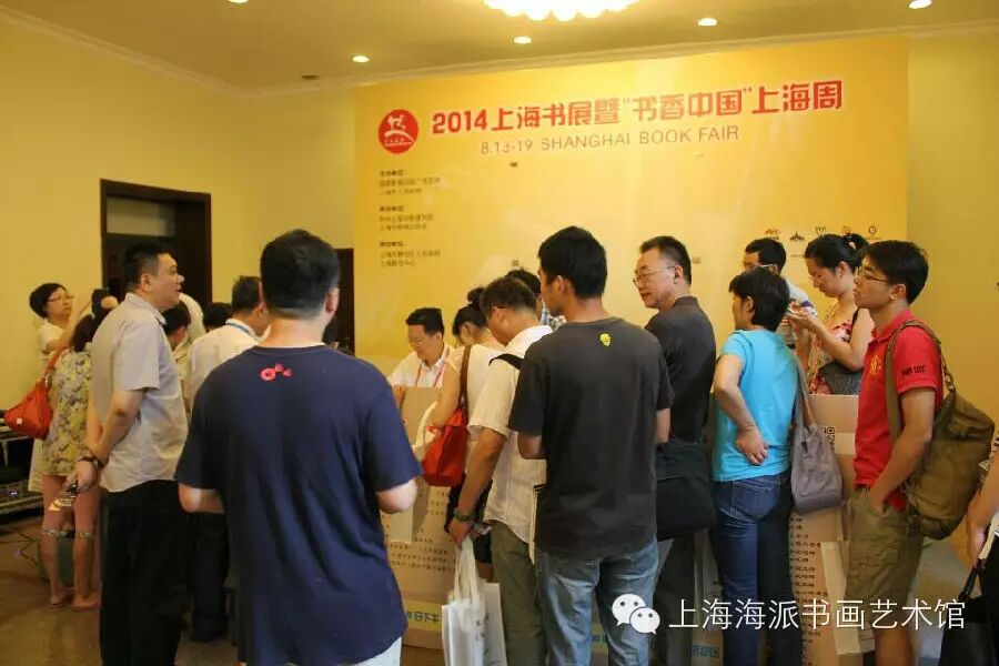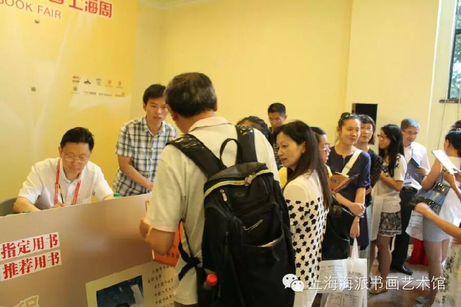 上海海派书画艺术讯息,2014年8月13日上午9:00,上海书展暨“书香中国”上海周开幕,爱书人迎来“黄金周”。上海市书法家协会副主席、上海市收藏协会副会长、上海市书法家协会篆隶专业委员会主任、上海市书法家协会青少年书法委员会会长、上海海派书画艺术馆馆长宣家鑫于书展首日下午3:30分,在书展活动现场签售由他编著的《青少年书法实用教程》系列丛书,这套丛书由上海浦江教育出版社出版,此次一共发行三本,分别是《颜真卿.勤礼碑》、《汉.曹全碑》、《王羲之.兰亭序》,作为上海市书法考级办公室的推荐用书和上海市书法家协会青少年书法委员会的指定用书,这套实用书籍老少皆宜,通俗美观大方,在体例等编排上遵从循序渐进的原则,受到不少读者和书法爱好者的追捧,在将近两个小时的活动中签售了558本,创造了上海书展历史以来艺术类图书的签售记录。
